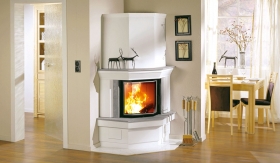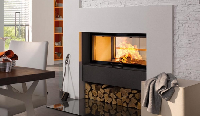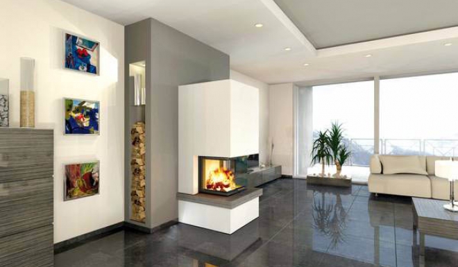 Corner Wood Fireplace by Hitze